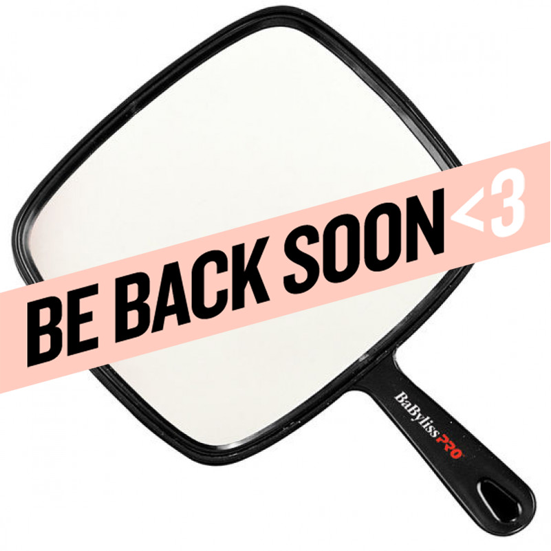 babylisspro professional mirror # bes0336bkucc. convenient hang loop on handle. dimensions: 7” x 8” (18 x 20 cm).