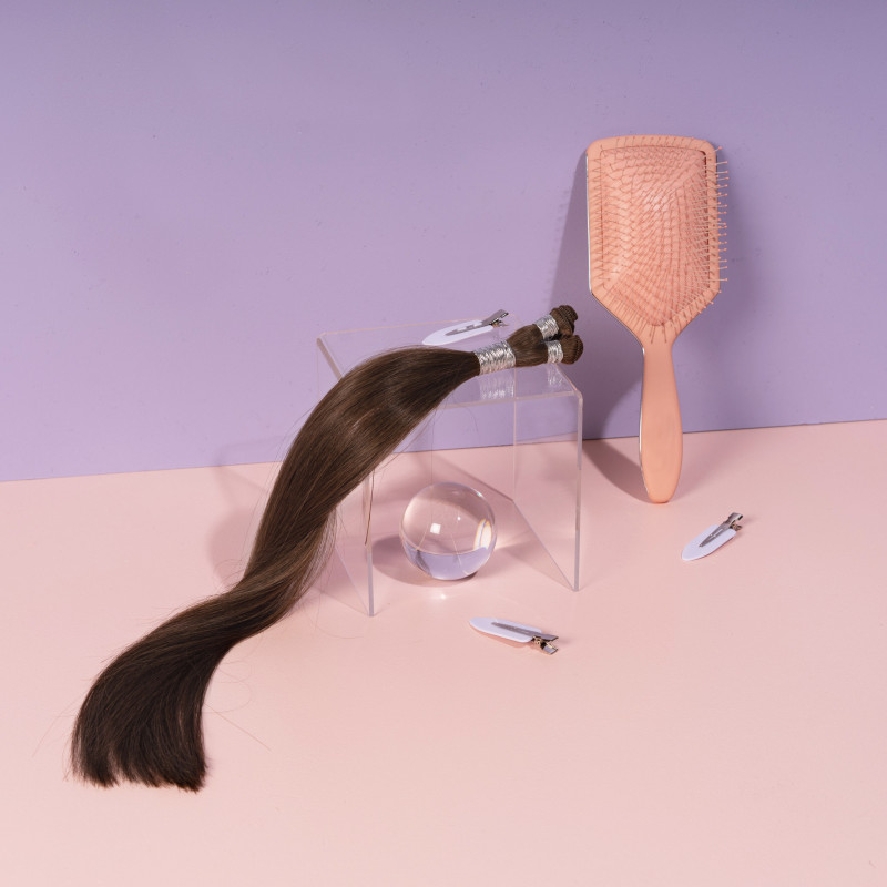 • can cut seam of weft to size (this gal has no return hairs)